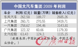 2009年中國成功晉身為全球最大的汽車產銷市場,中國汽車集團的賺錢能力也水漲船高,中國三大汽車集團東風、上汽和一汽集團各自的純利潤高達260億元人民幣(約合38億美元),遠遠超過全球聲名顯赫的豐田、大眾、通用,即使與財政情況較好的本田、福特、現代汽車(25億~27億美元)相比,盈利能力也遙遙領先。“如果一個汽車企業年營業額在幾百億元,而利潤只有區區幾千萬元,那實在是沒什么意思。”一位中國車企的高層信心十足地對記者這樣說。