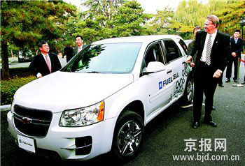 昨天與瓦格納同時(shí)亮相的是通用最新研發(fā)的5款新能源汽車,其中歐寶Corsa1.3渦輪增壓柴油車、雪佛蘭E-quinox氫燃料電池車、雪佛蘭Tahoe雙模混合動(dòng)力車、土星Aura輕度混合動(dòng)力車均為亞洲首次展出。