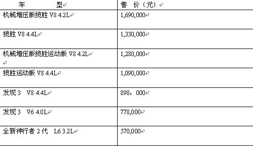 中新網11月8日電 近日,記者獲悉,路虎主力產品08款攬勝運動版正式登陸北京、華北、西北、西南市場,其中4.4升V8汽油自然進氣版價格為109萬元,4.2升V8機械增壓版價格為128萬元。經銷商處現已接受預訂,訂金為5萬元。