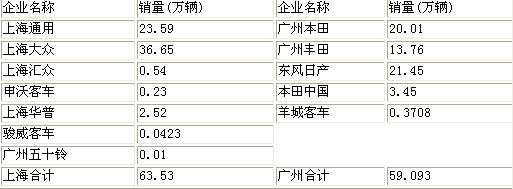 持此說法者以今年10月廣州、上海當地生產的乘用車銷量為依據。10月份,廣州三大乘用車企業——廣州本田、東風日產、廣州豐田的銷量約5.7萬輛,如果扣除在湖北襄樊生產的東風日產天籟,則廣州乘用車銷量約5.5萬輛。至于上海,盡管上海通用和上海大眾銷量合計6.5萬輛,但扣除上海通用沈陽、煙臺生產的1.3萬余輛,即使再計算上海華普的銷量,上海本地生產的汽車銷量不足5.3萬輛。