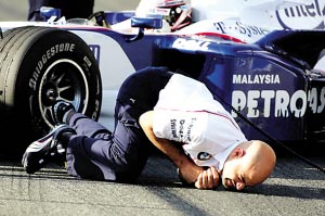 這起事故已得到寶馬-索伯車隊的證實,車隊暫時終止了KERS試驗車的測試進(jìn)程,并對事故原因展開調(diào)查。好在當(dāng)事機械師除了手臂輕微擦傷外,并無大礙。