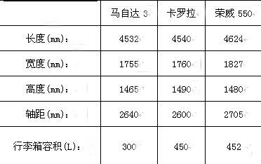 要實用,寬敞的空間不可或缺。而從三輛車型的車身尺寸來看,榮威550最占優勢。