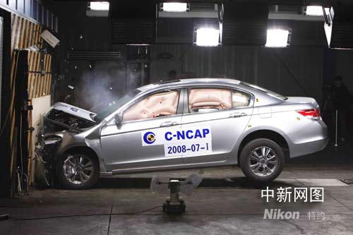 中新網4月21日電 2008年4月20日,中國汽車技術研究中心(CATARC)C-NCAP(中國新車評價規程)2008年度第一批測試車型的評價結果正式公布。作為測試車型之一,廣州本田第八代雅閣轎車憑借出色的安全性能,以總分50.3分的成績獲得了5星+的優異評價,創下同級別、同時也是國內轎車市場C-NCAP碰撞的最高分,成為目前為止國內唯一一款獲得五星+評價的轎車。