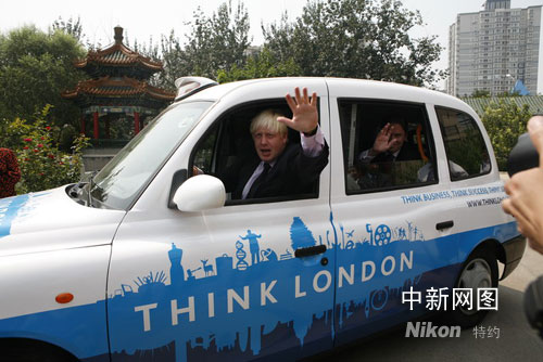 中新網8月26日電 8月25日,英國政府、英國倫敦投資局“走進倫敦之旅”在北京正式啟動,倫敦市長Johnson和倫敦投資局首席執行官Michael Charlton出席活動啟動儀式。活動現場,英國方面將一輛由中英合作生產的TX4改造成了“移動大使”,這輛藍白相間,標有“倫探尋敦”字樣的經典出租車成為整個巡游活動的“明星”,剛剛參加完北京奧運會閉幕式的倫敦市長Johnson親駕TX4為2012年倫敦奧運會做宣傳。
