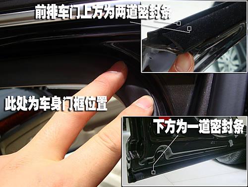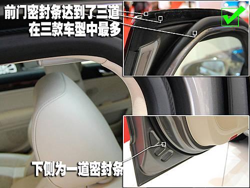 凱美瑞在車門上方提供了兩道密封、車門下方也有兩道密封,同樣的在車身門框的位置也提供了一圈密封條,車門上下兩側均有兩道密封條提供車身密封這在三款車型中是獨有的設計。