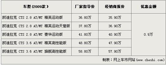 對比起08款款的4.5萬元的優惠,09款凱迪拉克的現金讓利是極為“吝嗇”,上個月網上市價格監測系統顯示新款凱迪拉克是分文不讓,近日,筆者走訪廣州地區經銷商處了解到,09款凱迪拉克有9千元的降價,優惠逼迫近萬大關。全系現車充足,主打紅色車和黑色車系。具體價格如下: