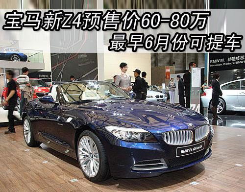 據北京寶馬經銷店銷售人員介紹,將引進國內的全新一代寶馬Z4分為sDrive30i和sDrive35i兩種車型,售價預計為60-80萬元。目前店內可以接受新Z4的預訂,訂金為10萬元。寶馬Z4 sDrive35i車型搭載了與寶馬X6 35i相同的3.0升雙渦輪直6引擎,最大功率達到了225Kw,最大扭矩達到了400Nm。現車方面銷售人員透露,最早的一批現車最快將會在6月份抵達北京寶馬經銷店,車型應該為sDrive30i,交訂金的消費者將會第一時間提到現車。