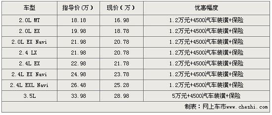 據經銷商表示,購買八代雅閣除了可以得到5萬元的價格優惠外,還可以得到4500元的裝潢大禮包和保險。優惠后的八代雅閣2.0 MT售價僅為16.98萬。