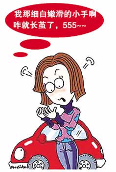 對策:現(xiàn)在一般的美容院都有護手霜,如果手臂確實粗大,建議做一些瘦臂護理,也有專門的瘦臂霜賣。長時間開車的車友,注意帶手套,如果已經長了繭的,建議經常到美容院做做保養(yǎng)。(老云)