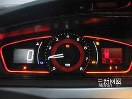 位于中央的轉速表去,首次采用脈沖感應設計,使儀表盤更具運動感,并能快速靈活的表示發動機轉速。中央轉速盤上還包括用來表示車輛手剎狀態的手剎指示燈等車輛信息。當手剎被拉起后,該指示燈自動點亮。手剎被放下時,該指示燈自動熄滅。