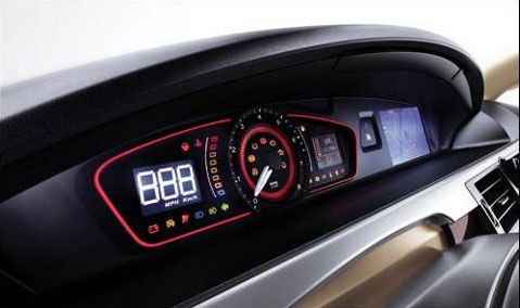榮威550無論在外形和內飾上都是當之無愧的NO.1。榮威550的內部內飾充滿了科幻氣質,最具科幻氣質的是榮威550的數字化高科技儀表盤,整個儀表控制臺將前衛的數字儀表顯示與傳統指針儀表盤巧妙結合,夜幕降臨,整個車廂內散發出炫目的紅色光芒,絢麗奪目,馳騁而過,疑似宇宙飛船墮入地球。另外,榮威550的豐富科技化配置讓人目不暇接,一鍵式啟動系統、數字管理系統、GPS和USB借口等,都能讓人覺得錯以為置身科技型的概念車之中。