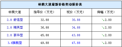 我們從北京地區部分通用別克4S店獲悉,別克旗下高級商務車型林蔭大道已于不久前停產,近日開始清理庫存,據悉現在各店現車都不太多,一些經銷商處只有頂配3.6旗艦型,另外,停產的車型并沒有出現人們期望中的大幅優惠,從走訪的情況看來,多數經銷商仍然保持著現車2萬元的優惠,感興趣的朋友可以與經銷商聯系,具體信息請見下表: