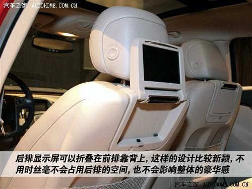 其他的豪華配置比如GPS導航、座椅通風這些肯定都少不了,比較有意思的是后排液晶屏,在前排座椅靠背上,不用的時候完全折疊,不影響美觀,而不像其他車型的后排液晶屏似的如同一塊黑板一樣固定在那里。