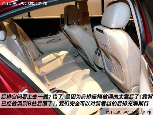 后排空間看上去很小?那只是錯覺,因為前排座椅被調得太靠后,靠背已經在B柱后面了,實際駕駛時肯定不會坐得如此靠后,況且新君越有超過2.9米的軸距,后排空間應該很值得期待才對。