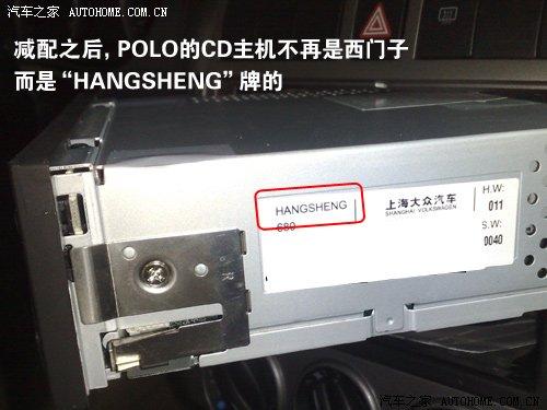 POLO全系都是單碟CD,未減配之前是國產(chǎn)的西門子,簡配之后是什么品牌呢?我們從網(wǎng)友拆車的照片中可以找到,簡配之后的音響主機(jī)品牌為“航盛”,很湊巧的是,我記得09款速騰的音響主機(jī)也是航盛牌的。