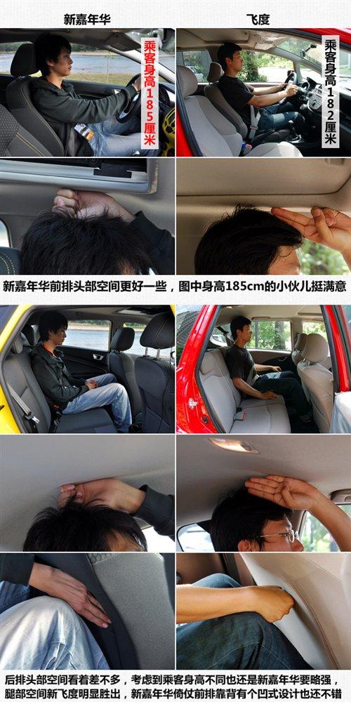 以亞洲人的身高來看,兩款車型的頭部空間都屬于夠用級別。其中新嘉年華要略好一些,至少我們圖上那位身高185cm的小伙兒就沒覺得有什么壓抑的感覺。而飛度車內的乘客身高為182cm,頭部空間的余量顯然不如新嘉年華。