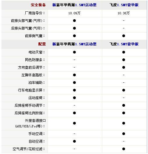 因為飛度的車型相對較少,因此我們只拿1.3MT、1.5MT以及1.5AT來與價格相當?shù)男录文耆A做個比較,而價格高達12.98萬元的炫酷運動版恐怕少有人問津,也就沒有什么可比性。