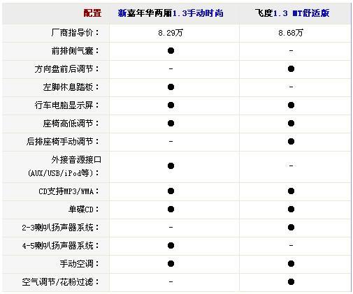 兩款車型的定價區(qū)間有不小的差距,大概在八千元左右。不過,因為飛度目前有大約3000元左右的少量優(yōu)惠,實際算下來售價還算是接近的。這種情況下配置的比較也才顯得更有意義。