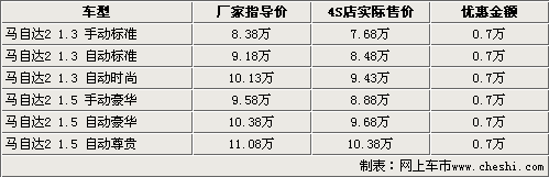 據(jù)長安馬自達(dá)銷售人員表示,購買馬自達(dá)2車型除了可以得到7000元現(xiàn)金優(yōu)惠外,還可以得到廠家贈送價值千元的原廠汽車裝飾。目前馬自達(dá)2兩廂車型的貨源比較緊張,部分車型需要提前預(yù)訂,訂貨周期一般在7-15個工作日左右。由于小排量車型的購置稅下調(diào),整體購車價將會下調(diào)3-4千元左右,在加上目前的現(xiàn)金優(yōu)惠,消費者目前購車還是比較劃算的。