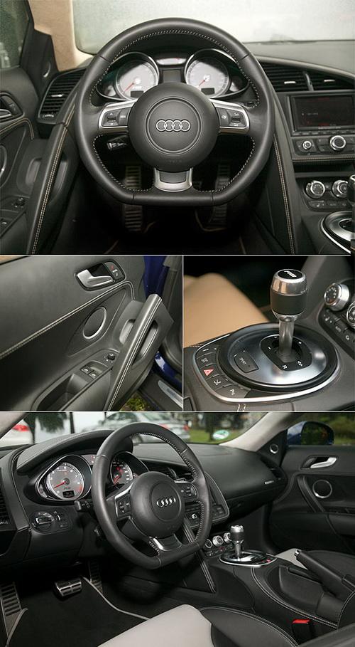 R8采用底部削平的三幅式多功能方向盤,365mm直徑的方向盤以輕量化鎂合金打造,握感算是恰到好處;不過若能加入R8專屬的辨識銘牌,相信更能與小字輩的TT作出區別。排檔桿部份,短小精悍的金屬排檔桿則以皮革包覆,短促的檔位行程更是手感絕佳。