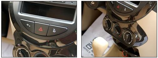 低配車型僅配備了一臺FM收音機,雖然沒有CD音響,但是附帶的AUX功能還是使實用性大大增強,安全帶提示功能為全車系標配,手動空調旋扭處造型不錯,不過做工和手感卻很一般。