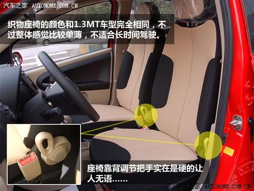 光從打開車門的第一感覺來說,熊貓給編者的感覺相當不錯,深淺相間的座椅配色很符合熊貓的車名。但從實際乘坐感受來看,座椅還是給人以單薄的感覺,平直而缺乏支撐力,不適合長時間駕駛。同時,座椅靠背的調節扳手實在是太硬了,主駕左側的調節扳手所留給駕駛者伸手的空間又實在是非常小,僅操作了一次以后編者已經滿頭大汗,希望這個只是個別現象而已。
