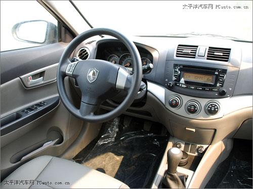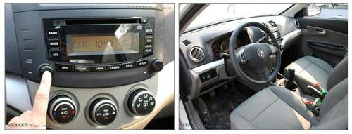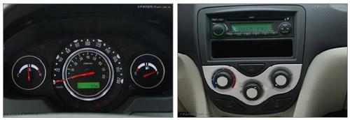 不得不提的亮點是,同悅復合式的自發光儀表盤無需特意去開啟,光線暗下來時就會自然變亮,外圈為時速表,內圈為轉速表,左右兩側分別為水溫表和油表,非常漂亮,沒有像一些同級小型車那樣取消水溫表令人感到欣慰,這一點上確實體現了自主品牌的厚道。同悅儀表樣式效果都和凱美瑞很相像,充滿了立體感受。不過精細度程度仍然表明這只是經濟自主小車。4個圓形空調出風口比悅翔更時尚,CD下的儲物格也充分利用起來。