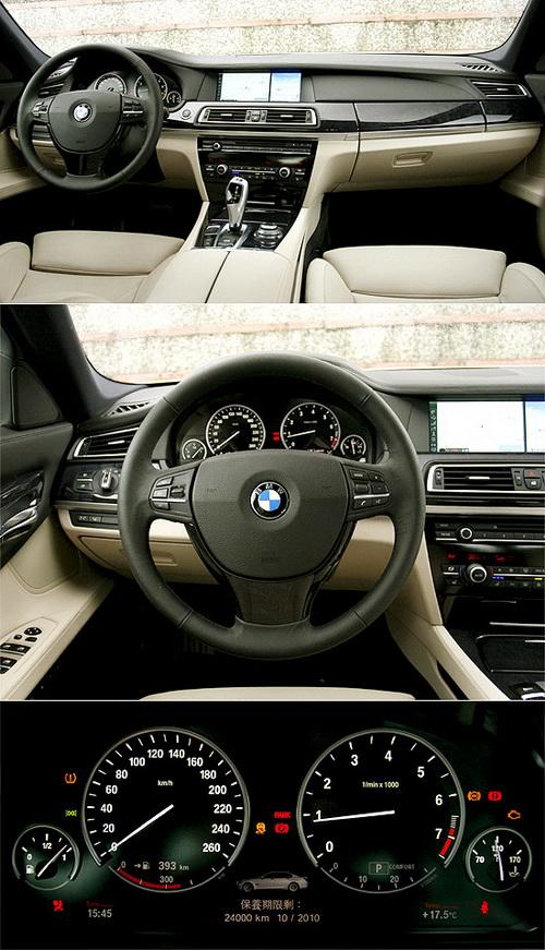 排檔設計也由上一代的方向盤橫置排檔桿設計,改回中央排檔桿樣式的Steptronic六前速手自一體,棱角排檔桿造型也與新家族設計同步,結合新一代iDrive操控接口、電子式駐車、動態駕馭控制系統與ESP off按鍵。與750Li相同的三幅造型方向盤雖然風格沿用,但是多功能按鍵的排列則改為利于雙手拇指操作的左右水平對稱設計,不僅如此,五代7系儀表改為全液晶屏幕顯示,不僅在按壓電門啟動鍵后,清晰呈現豐富的儀表信息,液晶化的顯示優勢,也讓行車信息的圖象顯示功能更為精進,成為駕馭接口的進化重點。