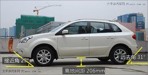 雖說(shuō)雷諾Koleos不以SUV自居而是強(qiáng)調(diào)Crossover的跨界車(chē)型,但是起外形設(shè)計(jì)則處處體現(xiàn)SUV的特質(zhì),206mm的最小離地間距保證了其有足夠的通過(guò)性能,而27°的接近角和31°的遠(yuǎn)去角都完全是按照SUV的級(jí)別來(lái)設(shè)計(jì)的,應(yīng)對(duì)各種顛簸路面或是崎嶇山路都能從容通過(guò)。