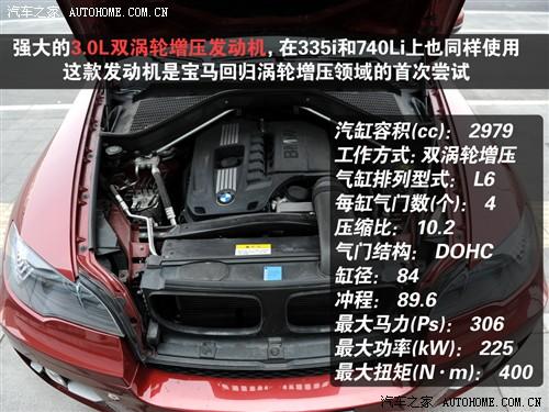 X6一種有兩款車,分別是xDrive35i和xDrive50i,此次我們體驗的是前者,它搭載的是和已經引進的335i一樣的發動機:3.0排量雙渦輪增壓。這款發動機可以說是寶馬回歸渦輪增壓領域的首次嘗試,效果怎么樣?335i已經被證明相當猛。