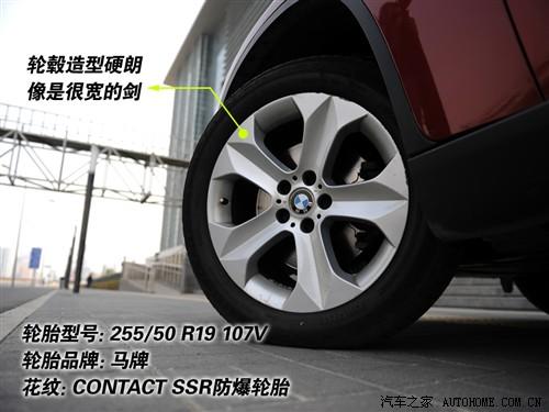 X6的輪轂是我十分喜歡的類型,不是很有“張力”但絕對看上去夠力量感,五個輻條就像五支古代西方武士所使用的比較寬的劍。前后一樣的輪胎寬度都是255mm,品牌還是寶馬比較青睞的馬牌,而且還是防爆胎,不過胎壁不像3系使用的那樣堅硬。花紋雖然不是十分細碎但也絕對不像專業SUV那樣粗大,更多還是照顧了公路性能。