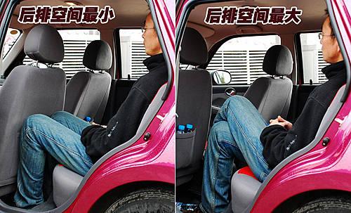 力帆320在內(nèi)部空間表現(xiàn)最好的應(yīng)該是后排的腿部空間,從圖中可以看的出來。將前排座椅調(diào)到最后,使后排達(dá)到最小的腿部空間,這時(shí)坐在后排的乘客也不會(huì)感覺太多緊促感。而當(dāng)后排的腿部空間最大的時(shí)候,后排乘客的乘坐舒適性更加優(yōu)秀,寬大的空間讓人很難相信這是一款微型轎車。