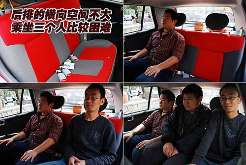 后排的腿部空間固然表現不錯,但后排的座椅寬度卻仍然是微型轎車的標準。通過圖中可以看的出來,后排坐下兩名乘客正合適,如果再擠上一個人,會顯得非常擁擠。不過如果身材小一點,后排坐下三名乘客還是沒有問題的。