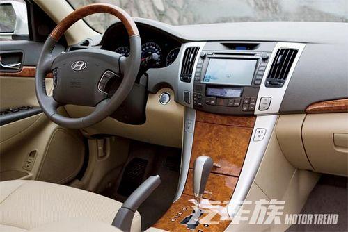相比外觀的年輕態(tài),SONATA領(lǐng)翔的內(nèi)室改進(jìn)也算是大刀闊斧。雖然主打商務(wù),但全新的內(nèi)室風(fēng)格并不乏活潑氣息,簡(jiǎn)單的顏色搭配和悅動(dòng)非常相像。可惜的是,做工和用料依然不夠講究,讓人略顯失望。還有就是仿桃木面板,可能它在一部分人群心目中是個(gè)顯范兒的設(shè)計(jì),當(dāng)然還要看材料的顏色和質(zhì)感以及使用頻率和位置。中控臺(tái)是個(gè)亮點(diǎn),也讓我看到了現(xiàn)代今后的家族特征。方向盤下方取消了鑰匙孔,而使用無(wú)鑰匙啟動(dòng)系統(tǒng),開始向同級(jí)別的日本車靠攏。藍(lán)色自發(fā)光儀表不僅美觀,簡(jiǎn)潔時(shí)尚的三環(huán)設(shè)計(jì),更將車輛狀態(tài)清楚地展現(xiàn)在駕駛者面前。“后排工程”一直是日韓中級(jí)車最引以為傲的地方,SONATA領(lǐng)翔當(dāng)然也不例外。真皮包裹的座椅以及扶手部分的材料非常柔軟,還設(shè)有煙灰缸、杯架及手動(dòng)遮陽(yáng)簾,中央扶手后部連通行李廂,人性化做得不錯(cuò)。
