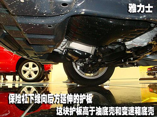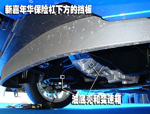 長(zhǎng)安福特新建年華和廣豐雅力士相同,沒有設(shè)計(jì)發(fā)動(dòng)機(jī)和變速箱下方的護(hù)板,不過前保險(xiǎn)杠下緣突出的擋板同樣起到了發(fā)動(dòng)機(jī)油底殼和變速箱底殼的第一道防線的作用。