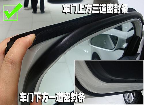 上海大眾POLO在車門上方提供了三道密封條,這是三款車型中獨(dú)有的設(shè)計,在車門下方為一道密封條。并且如果用手去觸摸的話也能夠感覺到POLO的密封條質(zhì)地軟硬適中有很好的彈性。