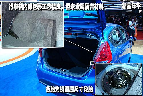 福特嘉年華的行李箱內部全部用符合材料進行了包裹處理,這層材料比較厚實和柔軟能夠對整車的隔音性起到一定幫助,備胎部分為鋼輪圈的全尺寸輪胎。