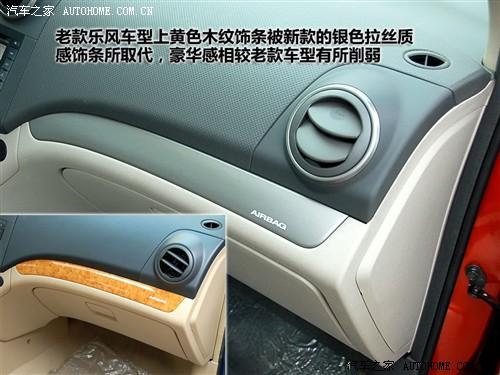老樂(lè)風(fēng)車(chē)型上所采用的黃色木紋內(nèi)飾,無(wú)論做工還是顏色在同級(jí)車(chē)中算上乘的。相較而言,新樂(lè)風(fēng)上的銀色拉絲飾條就顯得非常普通,雖然也沒(méi)有什么缺點(diǎn),但至少?zèng)]有亮點(diǎn)。