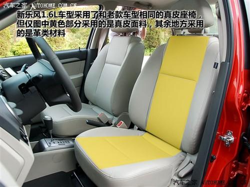 新樂(lè)風(fēng)1.6L車(chē)型和老款一樣采用了真皮座椅,但嚴(yán)格意義上來(lái)時(shí),該車(chē)的座椅僅在與體接觸部分采用了真皮,其余地方使用的皮革材料。不過(guò)總體的做工還算可以。