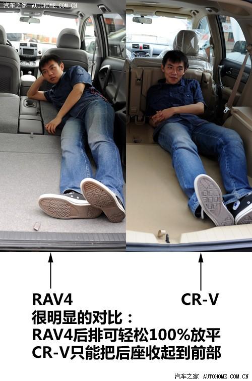 由于CR-V不拆后座的情況下是無法100%放平地板的,所以RAV-4在這里優勢太明顯了,輕按一鍵就100%放平,簡單、實用。