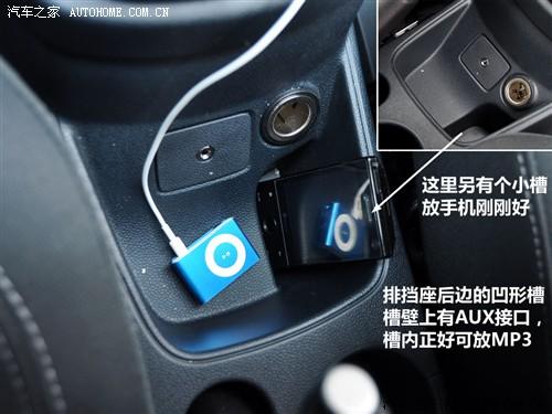 排擋座的后面是一個(gè)凹槽,槽壁上是AUX接口和電源。如果接MP3就剛好可以把播放器放在這個(gè)槽內(nèi),很方便。另外,右邊還有一個(gè)更深的槽,恰好是一個(gè)手機(jī)的寬度,放進(jìn)去一試果然非常合適。或者把MP3放在深槽里,淺槽內(nèi)還能放些零錢(qián)票據(jù)之類(lèi)的也不錯(cuò)。