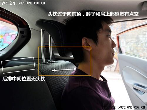 前排就是普通的手動六向調節方式,沒有什么可以特別說明的。而后排三人座只提供了兩個頭枕,頭枕可以上下調節,但是過于向前探出,就會頂著人的后腦勺,使脖子部位懸空,感覺不是很舒適。而且,沒有車頂拉手給乘客用來維持身體平衡讓人很不習慣。