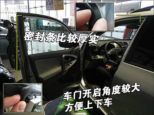 駕駛員一側(cè)車門完全打開(kāi)后車門開(kāi)啟角度很大,車身較高上下車都比較輕松。車門四周有橡膠密封條手觸感覺(jué)比較厚實(shí),與車門緊密貼合時(shí)能夠起到很好的密封隔音作用。
