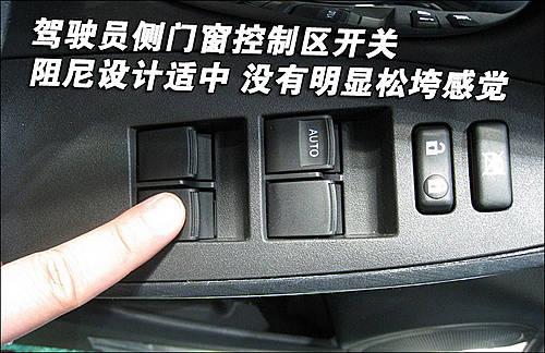 駕駛員側(cè)車門控制區(qū)集成了門窗以及中央門鎖控制鍵,整體做工十分細(xì)致,間隙均勻。使用時(shí)發(fā)現(xiàn)各按鍵的阻力適中,沒(méi)有明顯松垮的感覺(jué)。
