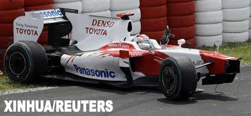5月10日,豐田車隊車手特魯利駕駛的賽車發生碰撞后停下。當日,F1西班牙大獎賽落幕,布朗GP車隊的英國車手巴頓奪得冠軍。新華社/路透