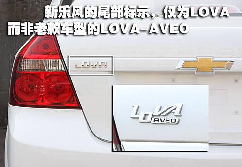 尾部標示上,原有車型的LOVA AVEO字樣代表著其在車系劃分上與AVEO樂騁不可避免的聯系,而新款樂風似乎希望改變消費者的這一觀念,僅僅向大家傳達LOVA樂風車系的概念。