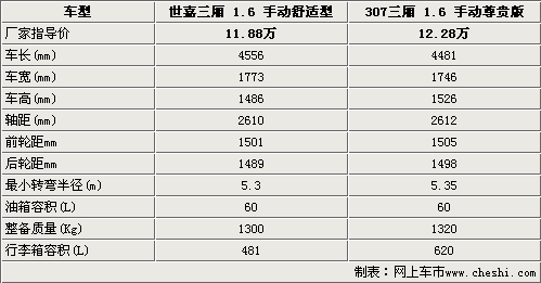 東風(fēng)雪鐵龍世嘉三廂1.6手動(dòng)舒適型和標(biāo)致307-1.6手動(dòng)舒適型都可以稱得上是該車款中的主力車型,兩款車型的定價(jià)相差了4000元整。在車身尺寸方面世嘉三廂車長(zhǎng)和車寬方面都要優(yōu)于標(biāo)致307尺寸。兩款車型的軸距均在2600mm左右,該尺寸在同級(jí)別車型中比較少見,完全可以滿足一般乘客的使用需求。307的車身高度達(dá)到了1526mm,這一點(diǎn)保證了其內(nèi)部高度的寬敞。標(biāo)致307的行李箱容積達(dá)到了620升,可以稱上是海量了,而世嘉三廂僅達(dá)到了481升。標(biāo)致307的前后輪距都要大于世嘉三廂,意味著標(biāo)致307操控性要優(yōu)越于雪鐵龍世嘉。