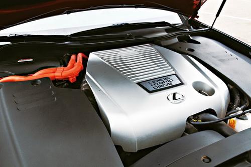 外觀上,車身前后的車標LOGO很明確地標出了450h與眾不同的身份。另外,遍布在車身各處的“Hybrid”字樣也是區分混合動力版和汽油版車型的依據。5輻的輪轂中間夾入了鍍鉻飾條的裝飾,讓GS450h看起來更加優雅。