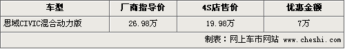 據(jù)4S店銷售人員介紹,目前思域混合動(dòng)力版車型現(xiàn)車并不多,消費(fèi)者購(gòu)買現(xiàn)車可以直接優(yōu)惠現(xiàn)金5萬元,如果選擇訂車的話則最高可以優(yōu)惠到7萬元,優(yōu)惠后售價(jià)僅為19.98萬元。訂車的話訂金為2000元,需要等待約一個(gè)月時(shí)間。