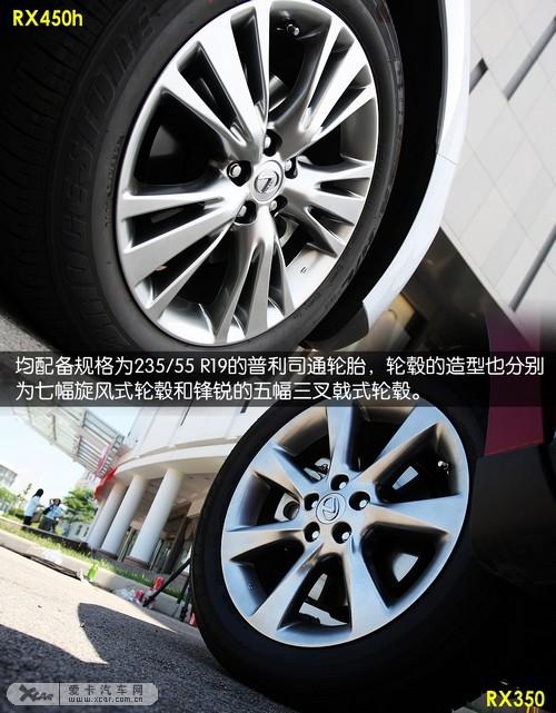 此外,新一代雷克薩斯RX350和RX450h均配備了規(guī)格為235/55 R19的普利司通輪胎,輪轂的造型也分別為七幅旋風式輪轂和鋒銳的五幅三叉戟式輪轂,配合鑲嵌銀色鍍鉻飾條的內(nèi)凹式側(cè)裙,散發(fā)著亞光銀光澤的輪圈優(yōu)雅中帶著動感。
